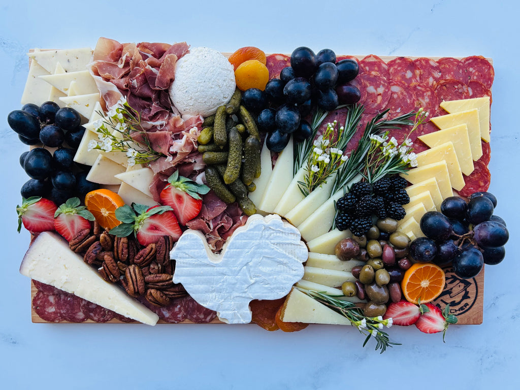All of our cheeses, meats, and produce are seasonal and sourced week to week. This allows us to offer the most fresh ingredients for your charcuterie, crudité, and fruit and dessert boards! Below are a few of our crowd favorites that feed 10-15 people.